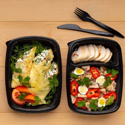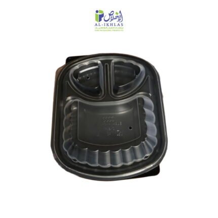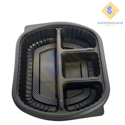 علبة وجبات 1، 2، 3 عين مصنوعة من بلاستيك عالي الجودة بلون أسود أنيق، مع غطاء محكم يحافظ على الطعام طازجًا وآمنًا. تأتي بتقسيمات عملية لتقديم أكثر من صنف في نفس العلبة دون اختلاط، ما يجعلها مثالية للمطاعم وخدمات التوصيل.