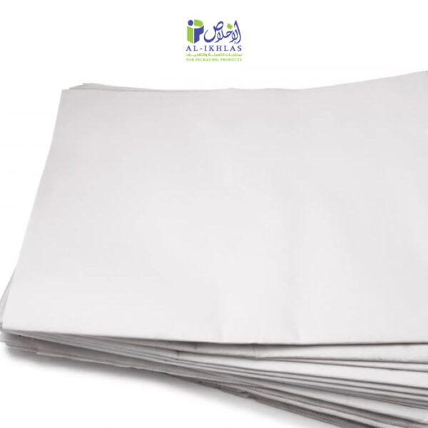 ورق تغليف أبيض بمقاس 70×100 سم ووزن 1 كيلو، مثالي لتغليف الأطعمة أو المنتجات بشكل عملي وآمن. خامة ورقية عالية الجودة تناسب الاستخدام التجاري والمطاعم .