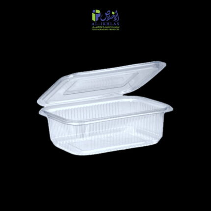 عبوة سلطة مفصلية شفافة بغطاء متصل، مصنوعة من خامة آمنة ومناسبة لتعبئة السلطة والمقبلات. متوفرة بمقاسات متعددة من 80 حتى 120 مللي، وتأتي كرتونة تحتوي على 600 عبوة، مثالية للاستخدام التجاري والمطاعم.