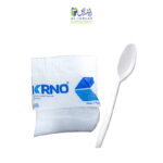 ملاعق بلاستيك كبيرة باللون الأبيض من ماركة كرنو، عبوة 50 قطعة. مصنوعة من خامة متينة وآمنة للطعام، مثالية للاستخدام اليومي في المطاعم .